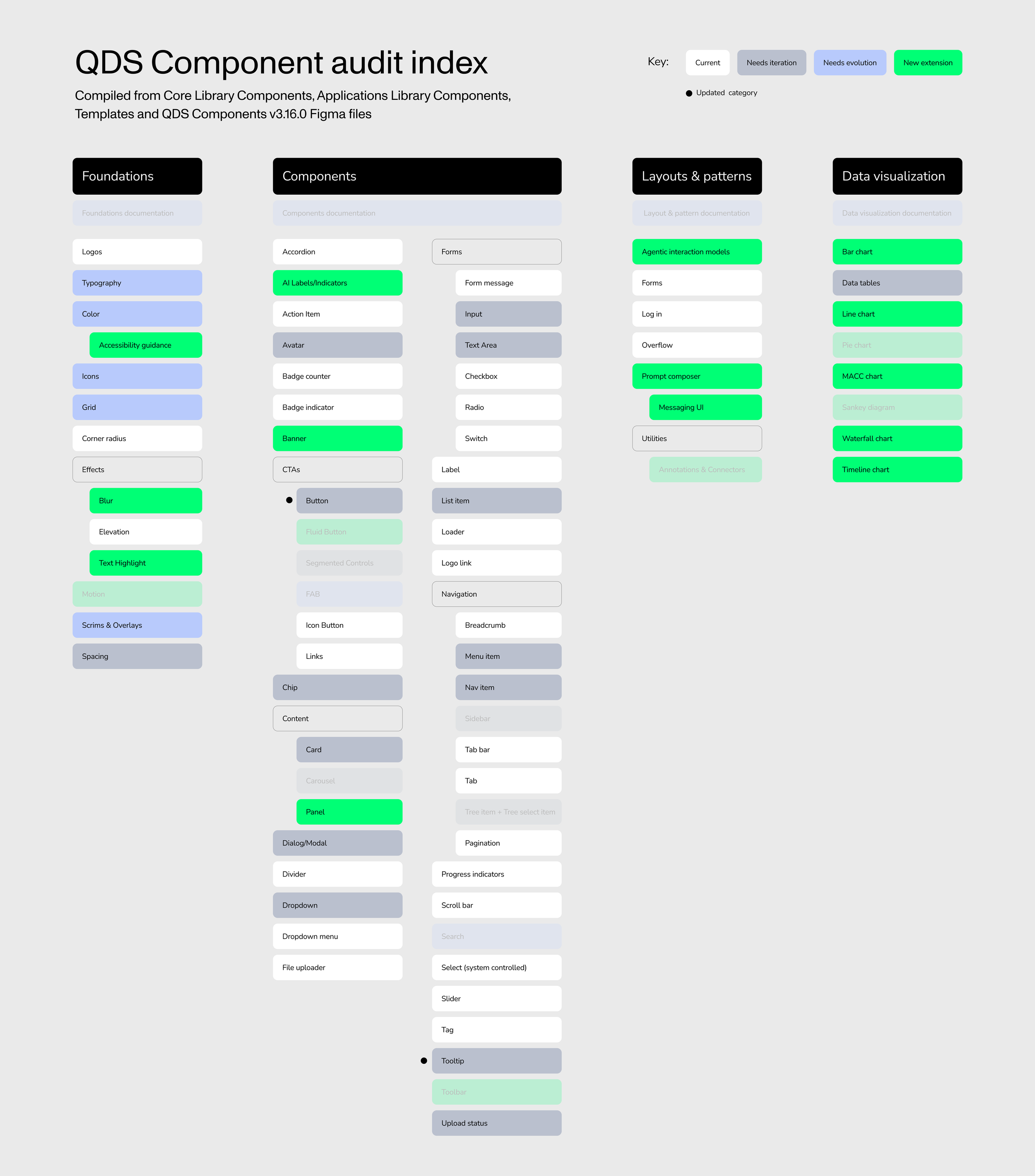 Several elements within the design system are viable for reuse but require targeted enhancements to ensure accessibility, and support for new user experiences.